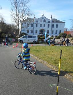 Schwierig war es auch. Da musste man über ein Brett fahren, eine Runde passieren und den Slalom bewältigen. Und zu guter Letzt konnte man am Schilderglücksrad seine Kenntnisse über Verkehrsschilder unter Beweis stellen.