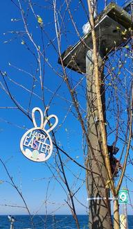 Auch unsere Kinder aus dem Kindergarten und Hort basteln wieder fleißig schönen Osterschmuck und gemeinsam hängen wir diesen auf. In diesem Jahr wollen wir den Eingangsbereich der Brücke besonders bunt gestalten und denken dabei daran, dass nicht so viele Schmuckteile in die Ostsee fallen.