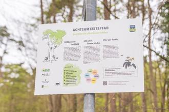 Am Lindenweg Ecke Felsenburg beginnt der Achtsamkeitspfad. Große Schilder wurden am Weg errichtet: 6 Methodenschilder erläutern die Aufgaben, die man auf dem Achtsamkeitspfad durchläuft. Sie ermöglichen die Einführung in Wort und Bild oder per gesprochenem Wort, welches über einen QR-Code abrufbar ist. Die Stationen sollen alle Sinne ansprechen. Sie gliedern sich in die Themen: Fühlen, Gehen, Sehen, Atmen, Hören, Riechen. Sie laden ein zum Innehalten mit dem Ziel, sich bewusst auf die Umgebung Wald und die eigenen Sinne einzulassen, sich die Ruhe zu gönnen und zu erleben, wie die Natur auf den Körper wirkt.