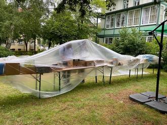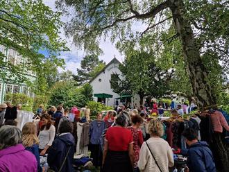Der Kleider- und Bücherflohmarkt im Garten der Bibliothek am 17. Juli war ein voller Erfolg. Vormittags gab es zwar ab und an noch ein paar Schauer. Aber so richtige Bücherliebhaber kann das nicht schrecken. Da wurde noch unter der Regenfolie weiter nach Schnäppchen gesucht. Nachmittags war es dann noch einmal bunt, trubelig und vergnügt. Vielen Dank an alle Organisatoren („Trubaldella-Truppe“), Helfer, Händler und Musiker. Das werden wir sicher noch einmal wiederholen!
