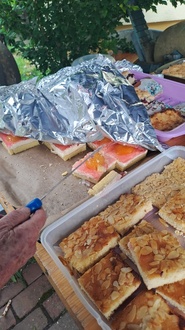 An unserem Versorgungszelt bildete sich am Vormittag eine lange Schlange… Die Lust auf selbstgebacken Kuchen war zu verlockend. Zum Teil wurde für das Zubereiten alte Backformen aus Keramik genutzt.