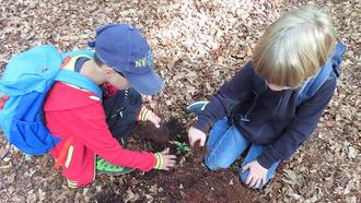 Ziel des Tages war es, die Natur nicht nur zu betrachten, sondern wirklich zu erleben: Die Kinder lernten essbare Früchte und Blätter kennen und durften sie probieren. Sie lauschten aufmerksam den Geräuschen des Waldes, spürten die Stille, atmeten bewusst ein und aus und gestalteten am Ende ein kunstvolles Bodenmandala aus Naturmaterialien. Ein besonderes Highlight war das gemeinsame Pflanzen eines Baumes - ein nachhaltiges Symbol für Wachstum, Verantwortung und Verbundenheit mit der Natur.