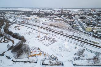 Luftaufnahme der Baustelle vom Inklusiven Schulzentrum Am Ellernholzteich