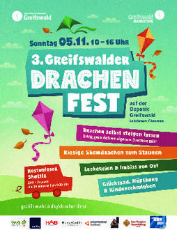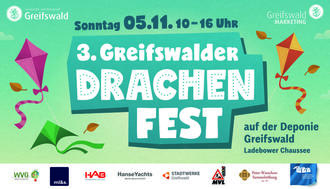 Wir machen den November bunt. Zum 3. Mal lassen wir die Drachen auf dem Deponieberg steigen. Kommt am 05.11.2023 in der Zeit von 10:00 bis 16:00 Uhr auf unseren „Drachenberg“ und seid dabei, wenn riesige Schmetterlinge, fliegende Pinguine oder andere Tiere den Himmel erobern. Bringt euren eigenen Drachen mit oder bastelt einen mit uns direkt vor Ort. Wir sorgen dafür, dass ihr euch mit Speisen und Getränken stärken könnt. Und wer keine Lust mehr auf Wind hat, kann sich auf der Hüpfburg austoben, am Glücksrad drehen, gegen die „Wand springen“ oder sich beim Kinderschminken verwandeln. Der Eintritt ist wie immer kostenfrei. Nutzt zur Anreise das Shuttle vom ZOB bis direkt vor die Tore des Deponieberges. Wer doch mit dem Auto kommen möchte, kann am Museumshafen oder auf dem ausgeschilderten Gelände der HanseYachts AG parken.