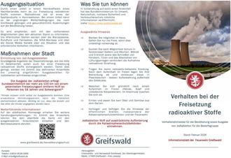 In einer neuen Serie zum Bevölkerungsschutz stellt die Universitäts- und Hansestadt Greifswald einen weiteren Notfallflyer vor. Dieser bietet kompakte und praxisnahe Hinweise für den Ernstfall – verständlich, alltagstauglich und direkt zum Ausschneiden bzw. online auf www.greifswald.de/bevoelkerungsschutz zum Download.