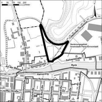 Der Geltungsbereich der Veränderungssperre entspricht nicht dem Geltungsbereich des Bebauungsplans Nr. 105.2, weil das Sanierungsgebiet „Erweiterung Sanierungsgebiet Innenstadt/ Fleischervorstadt“ gemäß des § 14 Abs. 4 BauGB ausgespart bleibt.