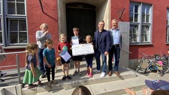 Kinder der Martinschule nehmen gemeinsam mit ihrem Lehrer den Preis entgegen