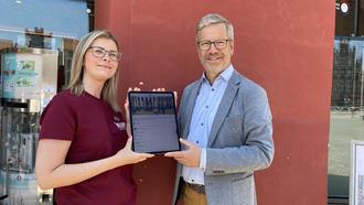 Dr. Fassbinder und Sophie Dufke stellen den Altstadtrundgang als neuen Hörspaziergang vor