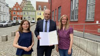 v.l.n.r. Anna Gatzke, Achim Lerm und Claudia Kowalzyck mit der Charta der Vielfalt