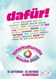 „Dafür!“ – Unter diesem Motto findet die Interkulturelle Woche in Greifswald vom 19. September bis zum 20. Oktober 2025 statt. Das bunte Programm mit über 40 Veranstaltungen für Jung und Alt wurde liebevoll vom Netzwerk Migration Greifswald organisiert. Die Veranstaltungen zielen darauf ab, den interkulturellen Dialog zu fördern und Räume für Begegnungen zu schaffen.