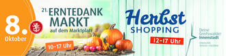 Mit einem Erntedankmarkt, einem verkaufsoffenen Sonntag in der Innenstadt und Livemusik in der Brüggstraße, Luther-Straße und im Westend stimmt Greifswald am Sonntag, dem 8. Oktober, auf den Herbst ein. Zwischen 10:00 und 17:00 Uhr bieten viele regionale Händlerinnen und Händler ihre saisontypischen Waren auf dem Historischen Marktplatz feil. An zahlreichen Ständen werden Gestecke, Blumen und Pflanzen verkauft. Hinzu kommen Obst- und Gemüsestände, die mit Erzeugnissen der Saison, wie Kürbissen, Zwiebelzöpfen, Äpfeln oder Kräutern, vertreten sind. Andere haben Eingewecktes sowie Käse-, Honig-, Fleisch- und Wurstspezialitäten im Angebot. Auch Kunsthandwerk kann gekauft werden, angefangen bei Keramik und Korbwaren über Filz- und Holzartikel bis hin zu Schmuck und Spielzeug. Ab 12:00 Uhr öffnen die Geschäfte in der Innenstadt ihre Türen. Hier kann nach Herzenslust gebummelt, gekauft und geschlemmt werden.