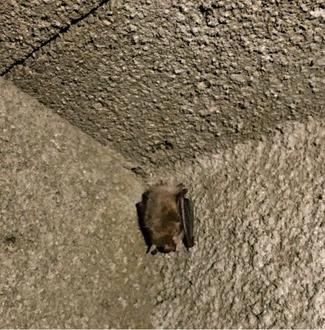 Zur größten Art, der fünf hier lebenden Fledermäuse, gehört das „Grosse Mausohr“, welches in einem der Bunker, der als Labyrinth gestaltet ist, jetzt im Winter von der Decke hängt.
