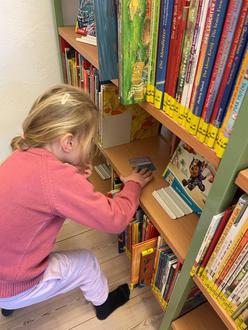 Danach verwandelte sich die Bibliothek in ein echtes Entdeckerland. Bei einer Schnipseljagd durch die Räume suchten die Kinder nach Hinweisen, erkundeten Regale, Ecken und verborgene Schätze. Bücher wurden vorsichtig in die Hand genommen, neugierig aufgeklappt und gemeinsam betrachtet.