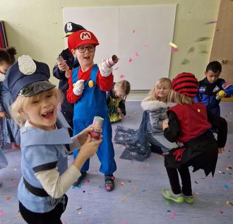 Anfang Februar fand unsere fröhliche Faschingsfeier statt. Die Räume hatten wir bunt geschmückt mit Luftschlangen, Girlanden und vielen Luftballons. Schon beim Betreten konnte man die ausgelassene Stimmung spüren. Alle Kinder erschienen in fantasievollen und kreativen Kostümen. Von Prinzessinnen, Meerjungfrauen und Polizisten bis hin zu Superhelden und Tieren war alles vertreten.