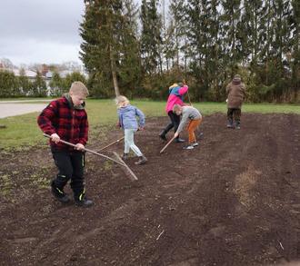 Unterstützt wurden wir vom Mitarbeiter der Gemeinde, der die Flächen vorbereitet hat. Es wurde unter Mitarbeit von Kindern und Jugendlichen der Gemeinde am 11. April regionales, samenfestes Saatgut ausgebracht.