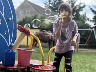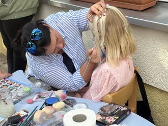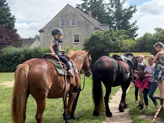 Für die kleinen Gäste war auch abseits der Bühne viel geboten: Spielstationen wie Seifenblasen, Kinderschminken, Tattoos und ein Glücksrad sorgten für Spaß und Abwechslung. Das größte Staunen löste jedoch eine tierische Überraschung aus: Zwei Freundinnen unseres Kollegen Christian, Katja und Marie, brachten ihre Pferde mit und ermöglichten den Kindern kleine Reitrunden - ein besonderes Erlebnis, das viele Kinderaugen zum Leuchten brachte.