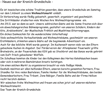 Es ist inzwischen eine schöne Tradition geworden, dass unsere Grundschule am Samstag vor dem 1. Advent zu einem Weihnachtsmarkt einlädt.