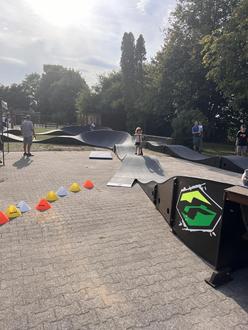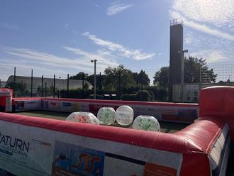 Um 6.00 Uhr morgens fuhr ein LKW aus Neubrandenburg auf den Schulhof, um die Einzelteile für die Pumptrack abzuladen. Bis um 10.00 Uhr musste der Radparcours aufgebaut sein. Dann sollten auch alle anderen Standorte öffnen, die entlang der Stralsunder Straße verteilt waren. Ein halbes Jahr zuvor hatte das Organisationsteam mit den Planungen begonnen. Dass wir so einen heißen 7. September bekommen würden, der vielleicht viele lieber ans Wasser zog, damit haben wir nicht gerechnet. Nur gut, dass die Bubblebälle elektrisch aufzublasen waren, aber auf dem Bolzerplatz vor der Turnhalle war kein Schatten zu finden. So gerieten die vielen fleißigen Helfer im Pfarrgarten, auf dem Dorfplatz, vor dem Pflegedienst Behrens, im Hortgelände und auf dem Schulhof schon vor 10.00 Uhr mächtig ins Schwitzen. Vielleicht sollte man das nächste Kinderfest in zwei Jahren an die Damitzer Badestelle verlegen? Aber dann regnet es …