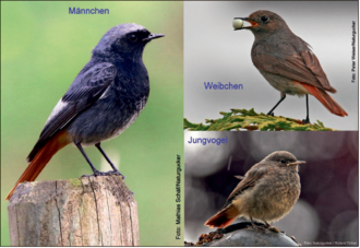 Der Hausrotschwanz ist ein kleiner Vogel - etwa so groß wie ein Spatz. Er hat ein tolles Rot am Schwanz, das ihm seinen Namen gibt - besonders schön bei den Männchen. Der Körper ist recht unscheinbar schwarz-grau gefärbt.
