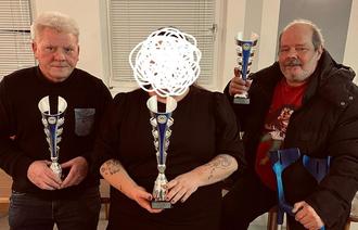 Nach Abschluss aller Turniere konnte sich Rüdiger Bennewitz (Pokal wurde stellvertretend in Empfang genommen) mit 8.254 Punkten auf Platz 1 schieben.