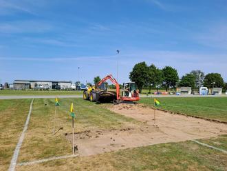 Bedanken möchten wir uns auch noch bei Hans Kopmann fürs das abtragen des alten Rasens, bei Firma Gustke Logistik und dem Kraftfahrer Steffen Wischnewski für das holen des Rollrasen aus Dummerstorf, bei Benjamin Blohm für die Bereitstellung der Hebebühne und bei der Firma Probau für den Mutterboden.