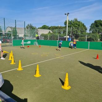 Insgesamt beteiligten sich bis zu 150 Kinder im Alter von 5 - 17 Jahren aktiv an den Stationen: Jonglier Wettbewerb, Fußball Parcours, Geschwindigkeitsmesser und Fußball Dart.