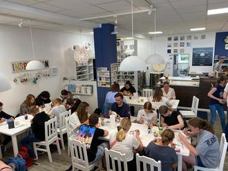 Gemeinsam mit einigen von euch waren wir vom Storchennest nämlich in der Region unterwegs! Die erste Ferienwoche verbrachten Jugendliche aus den Schulstandorten Barth, Sundhagen, Franzburg und Prohn gemeinschaftlich mit Ihren Jugend- und Schulsozialarbeiterinnen. Kreativ ging es heiß her. Wie knipse ich das perfekte Foto und welche Perspektiven müssen beachtet werden? Von dem Fotografen André Gschweng aus Greifswald lernten die Teilnehmenden alle Tipps und Klicks rund um die Fotografie. Die entstandenen kreativen Meisterwerke veredeln nun unter anderem die selbstverzierten Rucksäcke und Jutebeutel. In der Tuschbar in Rostock ging es farbenfroh weiter, Tassen, Schälchen, Figuren, Becher und Vasen konnten hier nach der Shoppingtour nach Lust und Laune vielseitig gestaltet werden. Für die musikalisch Interessierten unter uns wurde es am Mittwoch spannend. Cajons wurden aus Pappe und Holz gebaut und gestaltet. Danach bebte die minimanufaktur in Parow während des Trommelworkshops mit Johannes Hinz. Ein Highlight für Fans von alten Autos, Flugzeugen und Mopeds war die Besichtigung im Technikmuseum in Pütnitz. Besonders spannend war die Fahrt mit dem alten Ikarus über das Museumsgelände. Auf der Fahrt nach Hause besuchten wir die Bernsteinmanufaktur in Ribnitz-Dammgarten, neben der spannenden Wissensvermittlung konnte hier sogar ein eigener Kettenanhänger geschliffen werden.