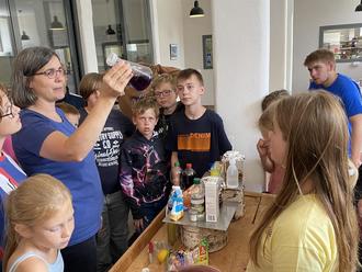 So spannend wie die erste Ferienwoche war, so erlebnisreich ging es in der zweiten Ferienwoche weiter. Aus den Schulstandorten Sundhagen, Barth und Prohn kamen diesmal Kinder der Klassenstufe 5./6. zusammen. Nachdem sich alle erstmal kennenlernen durften, ging es in einen vielseitigen Tag rund um das Thema Öl. So wurden Kräuter- und Massageöle gemixt und Öl- & Lavalampen gebaut. Versucht das doch mal nachzumachen! In der minimanufaktur erwartete uns das Team vom Friedrich-Löffler-Institut unter der Leitung von Ulrike Blohm. Gemeinsam wurde experimentiert im „Kidslabor“, dabei war besonders eindrucksvoll zu sehen, wie sich der pH-Wert von unterschiedlichen Stoffen verhält. Und auch die DNA von Bananen wurde isoliert und begutachtet. Der nächste Tag führte uns zum Nationalparkzentrum Königsstuhl mit dem brandneuen Skywalk. Die beeindruckende Natur und der Ausblick über die Ostsee war atemberaubend und durch die Ausstellung konnten wir auch ein bisschen Wissen mitnehmen. Den letzten Tag verbrachten wir in Barth im Theater. Dort durften wir hinter die Kulissen der Boddenbühne schauen, erhielten wertvolle Infos über Jobs im Theater und improvisierten ein eigenes Stück.