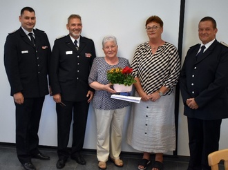 Das Treffen begann um 15:00 Uhr im Gemeindehaus Karcheez mit einer kurzen Begrüßung durch den Amtswehrführer Ronald Knüppel. Danach ging es weiter mit der Ehrung der Feuerwehrkameradin Sigrid Stieb aus Klein Upahl für 50 Jahre Mitgliedschaft in der Freiwilligen Feuerwehr. Die Auszeichnung mit dem Ehrenzeichen Landesfeuerwehrverbandes M-V nahm unser Kreisbrandmeister Mayk Tessin vor.