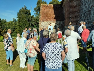 André Schulz von der Kirchgemeinde Lohmen gab uns eine kurze Einführung in die Geschichte und Architektur der Karcheezer Kirche. In der Kirche selbst fand eine Ausstellung der Künstlerin Christine de Boom mit Fotografien von Steinen aus der Region statt. Diese Ausstellung haben wir gern besucht, zumal die Künstlerin selbst anwesend war und uns Geschichten zu den Steinen und ihrer künstlerischen Arbeit erzählt hat.