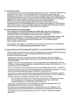 Die Wahlvorschläge sollten nach Möglichkeit so frühzeitig dem Gemeindewahlleiter vorliegen, dass Mängel, die die Gültigkeit der Wahlvorschläge betreffen, rechtzeitig behoben werden können.
