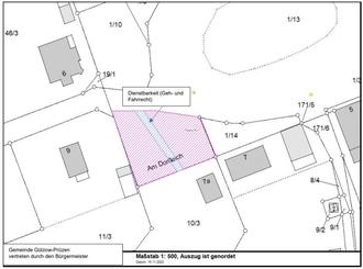 | - | auf dem Grundstück lastet eine Grunddienstbarkeit (Geh- und Fahrrecht) für den jeweiligen Eigentümer des Flurstücks 10/3 der Flur 1, Gemarkung Tieplitz; die Übernahme dieser Dienstbarkeit ist zwingend |