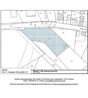 Ausschreibung Grundstück - Nachtragsliquidation Gutow" an den Nachtragsliquidator Herrn Nowak, Amt Güstrow-Land, Haselstraße 4 in 18273 Güstrow, zu richten. Werden mehrere Gebote abgegeben, behält sich der Nachtragsliquidator die Durchführung eines Bieterverfahrens vor. Angebotsklauseln, die eine automatische Steigerung des Kaufpreises beinhalten, sofern ein anderer Kaufinteressent einen höheren Kaufpreis bietet, werden nicht gewertet.