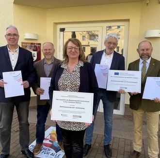 vlnr. Fred Lange, Wilfried Zander, Carmen Lehnart, Dr. Ulrich Blau und Romuald Bittl