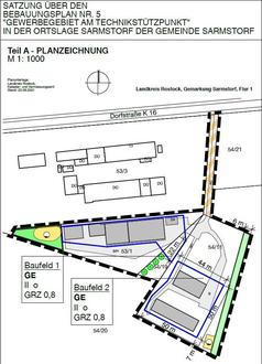 Die Entwürfe des Bebauungsplanes Nr. 5 „Gewerbegebiet am Technikstützpunkt“ in Sarmstorf der Gemeinde Sarmstorf bestehend aus der Planzeichnung und der Begründung sind im Amt Güstrow-Land, Haselstraße 4, 18273 Güstrow