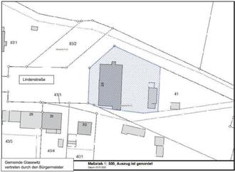 | - | Angebote werden nur unter Vorlage eines Vorhabenplanes inkl. Zeitplan berücksichtigt (bei Nichteinhaltung Rückkaufrecht der Gemeinde!); sollte für das Vorhaben ein größeres Grundstück benötigt werden, würde die Gemeinde ggf. weitere Flächen des Flurstücks 41 zusätzlich veräußern |