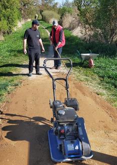 Unterstützt wurden sie dabei durch Christian Westphal aus Gülzow, der mit einer Rüttelplatte dem Brechsand die nötige Stabilität gab und Ralf Gruber.