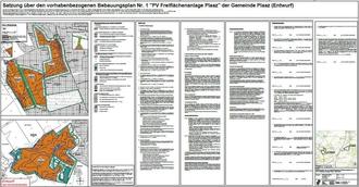 Die Entwürfe des vorhabenbezogenen Bebauungsplans Nr. 1 „PV Freiflächenanlage Plaaz“, bestehend aus dem Planteil A und dem Textteil B sowie der Planbegründung einschließlich des Umweltberichtes nebst Vorhaben- und Erschließungsplan in der Fassung vom Juni 2023 sowie die Fachgutachten sind gemäß § 3 Abs. 2 BauGB öffentlich auszulegen, die berührten Behörden und sonstige Träger öffentlicher Belange sind gemäß § 4 Abs. 2 BauGB zur Abgabe einer Stellungnahme aufzufordern und die Nachbargemeinden gemäß § 2 Abs. 2 BauGB zu beteiligen.