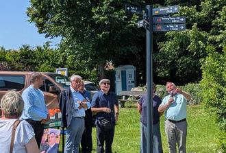 Ein Highlight an diesem Tag war die offizielle Einweihung eines Wegweisers mit den anwesenden Gästen. Dieser weist die Richtung und Entfernungen zu allen Partnern von Lohmen aus und ist Ausdruck der langjährigen interessanten und sehr erfolgreichen Zusammenarbeit und des Erfahrungsaustausches mit den nationalen und internationalen Partnergemeinden und -regionen.