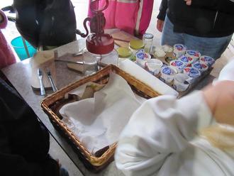 Ein weiterer Höhepunkt war die Milch- und Käseverkostung. Die Kinder konnten nicht nur probieren, sondern auch lernen, wie aus Sahne Butter gemacht wird. Das gemeinsame Butterschütteln machte großen Spaß. Mit großer Begeisterung wurde das Glas geschüttelt, bis sich die Butter endlich von der Molke trennte. Dann durfte probiert werden.