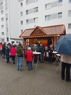 Trotz des regnerischen Wetters waren immerhin um die 50 Personen anwesend. Neben einem persönlichen Präsent für alle Mieterinnen und Mieter haben wir bei schöner Weihnachtsmusik mit lecker Glückwein, Flammlachs und anderen Köstlichkeiten gefeiert.