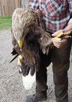 Auch ein verletzter Seeadler, gefunden in Karnin, konnte von uns in den Tierpark Greifswald überstellt werden. Dort wurde er der Aufzuchtstation übergeben und später wieder ausgesetzt.