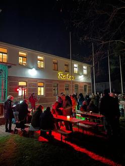 Bereits weit vor 18.00 Uhr kamen viele Einwohnerinnen und Einwohner, um beim gemeinsamen Singen von Weihnachtsliedern, einer Bratwurst, Glühwein und alkoholfreiem Punsch dabei zu sein.