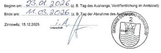 Gemäß § 31 Absatz 3 GeoVermG M-V wird den Beteiligten, denen die Grenzfeststellung und/oder Abmarkung nicht im Grenztermin oder schriftlich bekanntgegeben wurde, die Grenzfeststellung und/oder Abmarkung durch Offenlegung der Niederschrift über den Grenztermin bekanntgegeben.