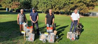 Bis zum Mittag waren dann die ersten sieben Sportfreundinnen und Sportfreunde mit der Arbeit auf dem Acker fertig. Nach einer einstündigen Verköstigungspause ging es mit frischem Elan in den Endspurt, mit der letzten Dreiergruppe sollte die Entscheidung fallen. Unser Sportfreund Gerhard Lemke der mit zwei Hunden gestartet war, konnte sich mit seiner Deutschen Schäferhündin „Hanna vom Bansiner Hof“ 95 Punkte ersuchen, dasselbe Ergebnis erstritten sich die Sportfreundin Sabine Hoth-Letzien vom HSV „Mecklenburger Schweiz“ Rittermannshagen mit ihrem Weißen Schweizer Schäferhund „King Abas vom weißen Birkenstolz“. Unser Vereinsmitglied Andreas Stöwhaas mit seinem DSH „Hanko vom alten Lindenstumpf“ kamen bei Ihrer Arbeit auf 92 Punkte. Da bei Punktgleichheit das Alter des Hundes ausschlaggebend ist, wird zugunsten des jüngeren Hundes die Rangfolge entschieden, Glück für Hanna.