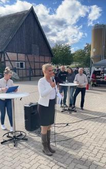 Ab 15 Uhr strömten zahlreiche Besucher auf den Hof und fanden auch noch Kaffee und Kuchen sowie kalte Getränke vor. Sie wurden von der Bürgermeisterin Frau Dr. Laura Isabelle Marisken und ihren Mitarbeiterinnen begrüßt. Zunächst gab es dann einen Vortrag des Geschichtsvereins der Kaiserbäder, mit dem die Historie des Ortes erläutert und die Bedeutung dieses Jubiläums - 770 Jahre nachgewiesene Existenz Sallenthins - betont wurde.