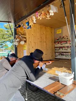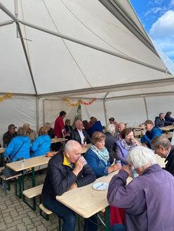 Am Freitag, dem 27. September herrschte mittags auf dem Reiterhof in Alt Sallenthin geschäftiges Treiben: Zelte wurden errichtet, (und gegen die starken Windböen sorgsam gesichert), Tische und Bänke aufgebaut, die Schützengilde kam mit einer Schießbude und die Feuerwehr Ahlbeck hatte zusätzlich zu ihren Einsatzwagen alles mitgebracht, was zu einer Grillparty gehört.