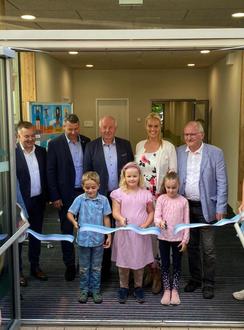 Feierliche Eröffnung der Mehrzweckhalle Heringsdorf. V.l.n.r: Krzysztof Dąbrowski - Stellvertretender Stadtpräsident Swinemünde, Michael Sack - Landrat Vorpommern-Greifswald, Eckhardt Rehberg - ehemaliger Bundestagsabgeordneter, Dr. Laura Isabelle Marisken - Bürgermeisterin Gemeinde Ostseebad Heringsdorf, Joachim Saupe - Vorsitzender des Gemeinderates