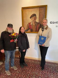 Die Stiftungsmitglieder und Kinder von Günther Jahn, Katharina und Christoph Jahn, bei der Eröffnung der Ausstellung der Günther Jahn Stiftung am 03.10.2024 in der Seestraße 12 in Heringsdorf.