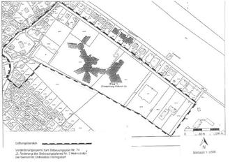 | (2.) | Gemäß § 14 (2) BauGB kann von der Veränderungssperre eine Ausnahme zugelassen werden, wenn überwiegende öffentliche Belange nicht entgegenstehen. Die Entscheidung über Ausnahmen trifft die Baugenehmigungsbehörde im Einvernehmen mit der Gemeinde. | |